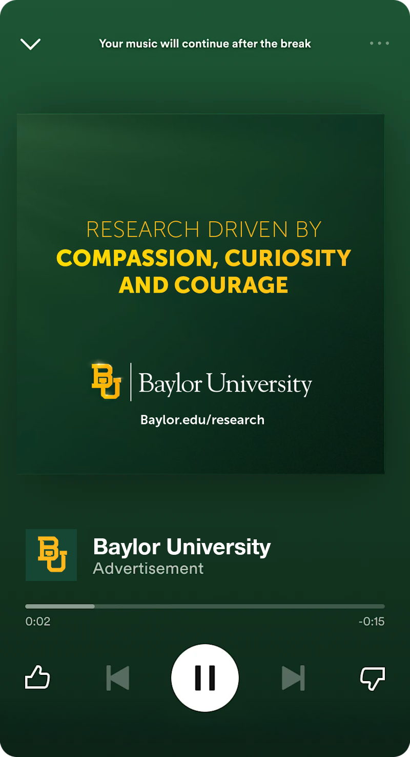 R1 status isn’t a one time thing. Universities have to qualify for it year after year. For phase 2, we wanted to change perceptions by playing on the idea that you might be surprised by what Baylor’s doing.
